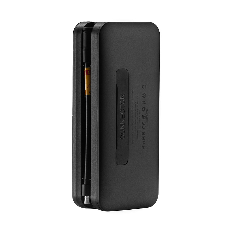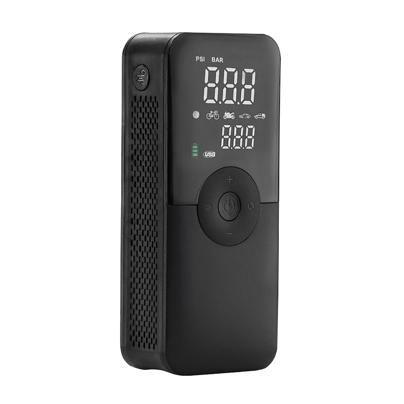 Воздушный компрессор обладает дополнительными функциями фонарика и внешней батареи. Компрессор оснащен интерфейсом питания 5V / 2A, благодаря которому можно заряжать устройства от USB-порта. Встроенный светодиодный фонарик имеет три режима освещения.