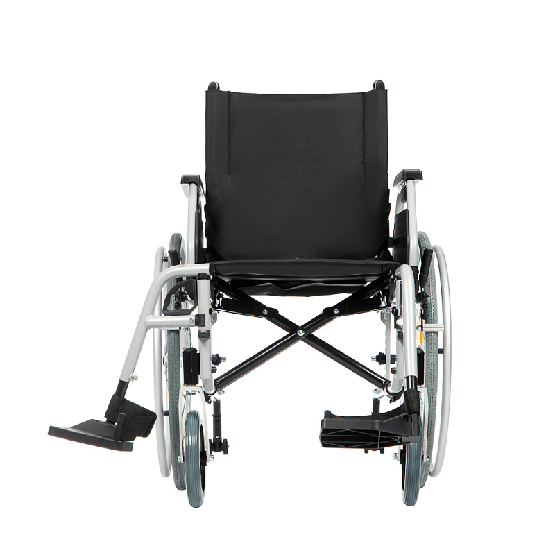 Инвалидная кресло-коляска оснащена ремнями безопасности, ремнями для стоп, карманом для мелочей на спинке.