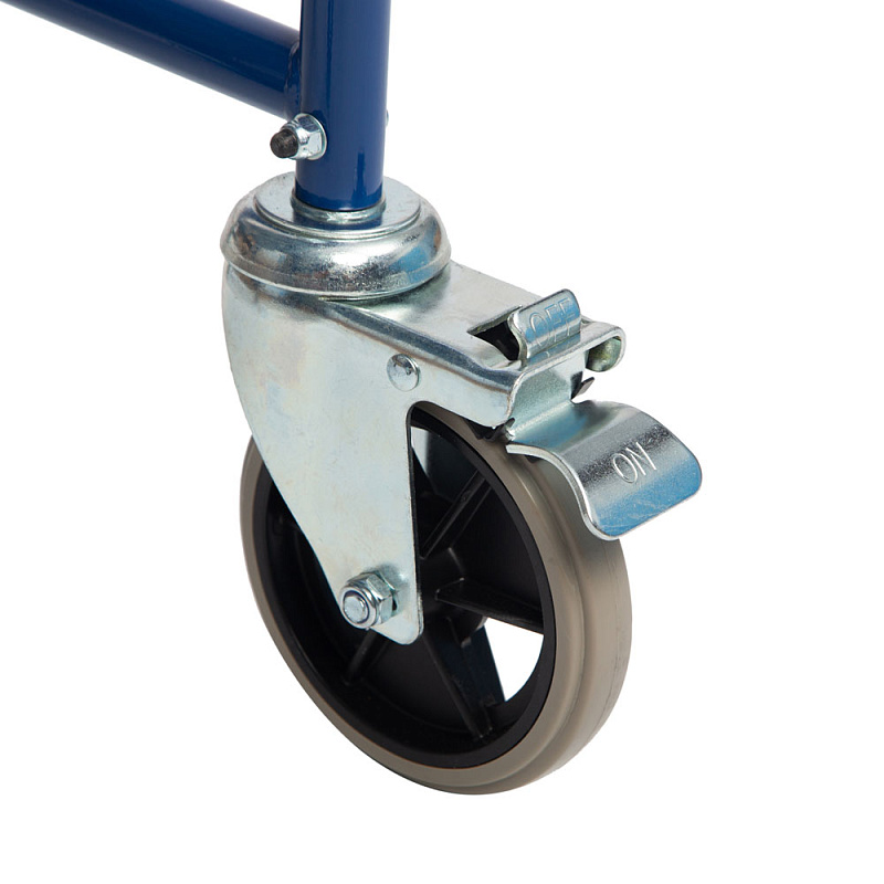 Оснащено цельнолитыми колесами, что облегчает перемещение стула для сопровождающего. Для обеспечения безопасной остановки предусмотрены два стояночных тормоза, расположенные на задних колесах.